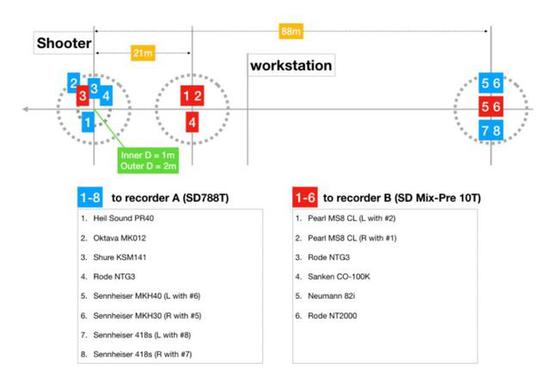 长按扫码播放1.4-1.6音频下图是一个典型的枪支录音的话筒与位置分配图: