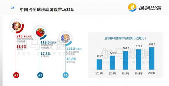 刚才讲到占比情况,这里是伽马数据发的一个报告,讲到中国是全球最大市场,占比全球31.6%,215.7亿美金的规模,美国和日本差不多,偶尔日本会多一点。