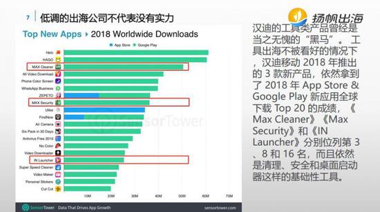 刚才其实讲了很多,对应的比较明星的企业,我们还可以再去了解一些相对比较低调的出海企业。比如ihandy,因为和谷歌的一些合作上的问题被关注到,他们其实08年就在AppStore推出了一个应用,时至今日,这家公司已经推出了几百款应用,在iOS推出内置手电筒之前,ihandy的手电筒是一直霸榜的。