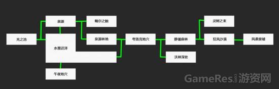 在第二个阶段,游戏进入非线性流程,玩家可以按照自己的喜好分别通关雪山、水池和沃林深处、沙漠这四个关卡从而拿到4个任务道具。