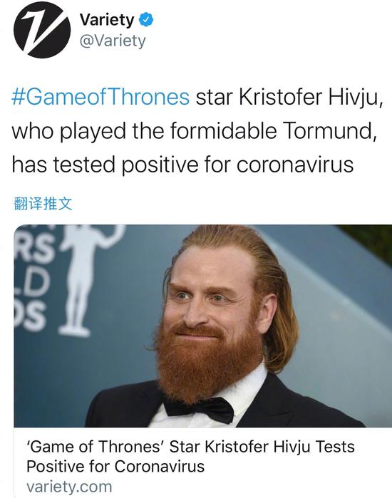 权游中扮演托蒙德的演员海维尤确诊感染,正在挪威隔离
