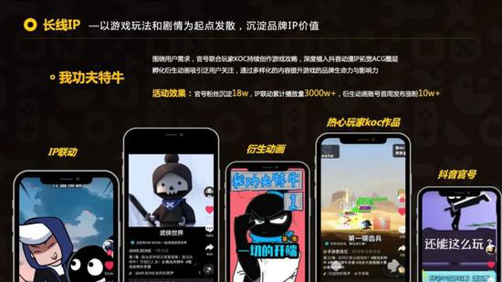 此外,《我功夫特牛》打破休闲游戏圈层,衍生出潮牌、动画等游戏IP形式产品,最终实现IP联动8000万播放,衍生动画账号周涨粉10万+的成绩。