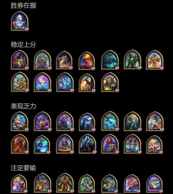 图片来源:NGA酒馆战棋版块,“ Hsreplay英雄梯队排名一图流”;