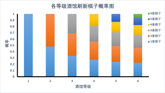 棋子刷新概率与酒馆等级关系图(截至版本16.6)