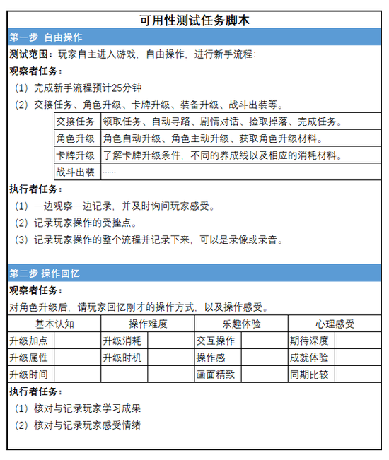 需要制定一个让玩家可以顺利体验的流程,这个流程可以包括玩家实际操作、调查问卷、访谈、观察等全部内容,因为有些调研目标不能通过单一方式得到结论。