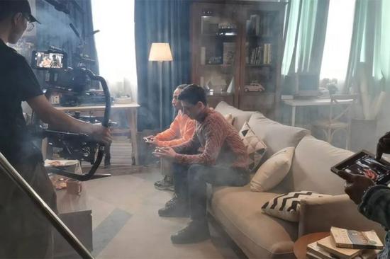 我们邀请真人参与拍摄的游戏广告,分镜草图也由他亲自操刀,全程跟拍。游泳、跨栏、滑板、吹气球、打保龄球——将现实生活与游戏元素一一对应。从分镜头确定、选角、选址、拍摄到剪辑,历经一个半月筹备和三天拍摄。当时广州已是12月天气微凉,拍摄游泳的爸爸和女儿几次下水毫无怨言,敬业度满分。拍摄攀岩的男演员一开始自信满满,待看到户外十几米高的岩壁时却忍不住腿软。而室内拍摄的演员则要挑战货不对版,播出游戏的电视屏幕在现场就是块纸板,画面通过后期剪辑再配。