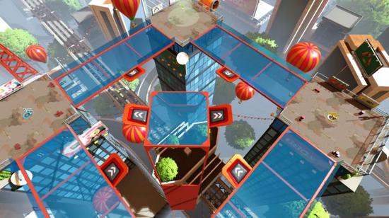 新创意带来无限可能,围绕着我们在外形、大小、重量和相应物理特性上的区别,开发团队做了很多尝试,从单人过关的桥段、多人混战的模式、Sonic式的速滑比赛到黑暗“地牢”(我们必须时不时抬起jiojio,以便让脚底的手电光照亮周围)。甚至还不再单纯追求合作过程,开发出了一个PvP模式:对战舞台被设计在由玻璃天桥连接起来的四个大楼楼顶,小机器人分成两队进行对战,通过抢占随机出现在各个楼顶的“据点”来累积获胜所需的分数。
