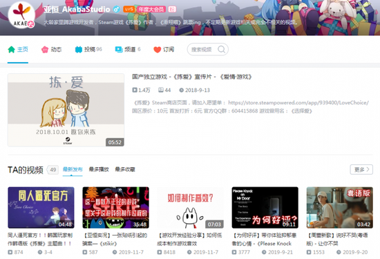 而亚恒的经历则是,《拣爱》很多玩家本身也是up主,他们制作《拣爱》的视频放上B站造成二次宣传。他表示很难定量地去说明做up主对游戏的销量能够有多少影响,但正面影响是肯定有的。