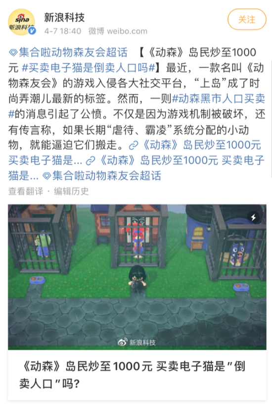 更可怕的是岛民黑市。在《动森》系列中,如果一直用捕虫网“殴打”岛上的动物邻居,动物会提出搬家,这时其他好友来到岛上,可以劝诱动物来到自己的岛屿。这发展出了一条令人不适的产业链,不少玩家开始反思人的异化,呼吁给游戏留下一方情感的净土。