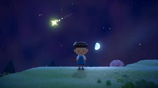感受一下大家社交的热情除了始终稀缺的服饰和家具,《动森》还设计了一些限时的稀缺场景。例如可以一键换装的星星棒、漂亮的星星家具都需要星星碎片来制作,而星星碎片需要玩家在流星划过天空时,仰望天空,双手空空地按下A键许愿获得。