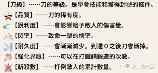 那么接下来就要讲解后天影响武器的刀级、锐利度、闪率、耐久度、强化界限是什么?这些属性如何整合为武器的Build。
