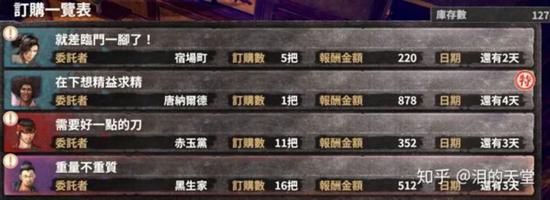 每天从地牢下来,会收到各势力、玩家的订购单: