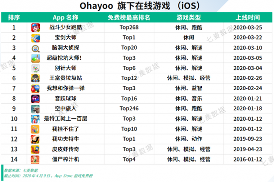 其开发商 Ohayoo 归属于字节跳动。七麦研究院发现,在 2020 年过去的三个月里,Ohayoo 连续发布了 11 款游戏。除‘宝剑大师’,‘我功夫特牛’、‘是特工就上一百层’等游戏表现也很出色。