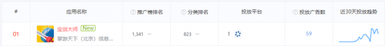如目前,位居 App Store 游戏免费榜 Top1 的‘宝剑大师’,在这两种广告投放上都做出了不同程度的选择。据 App Growing 数据显示,‘宝剑大师’选择了巨量引擎作为唯一投放平台。巨量引擎是字节跳动旗下的广告投放平台,这其中不仅是广告投放,其实也是字节跳动系产品,在给自家新推出的游戏做矩阵带量。
