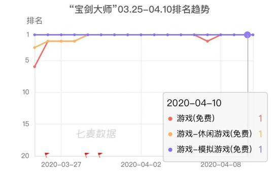 近日,频繁出现在游戏免费榜 Top1 的‘宝剑大师’便属于后者。‘宝剑大师’是于今年3 月上架的一款休闲游戏,目前,已累计霸占游戏免费榜、休闲游戏免费榜十几天。