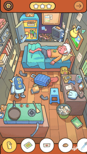 ‘脑洞大侦探’中,用户不一定能直接通过场景找到规定物品,有时候还需要动手,如找一个煎鸡蛋,用户需要先从冰箱中拿出鸡蛋,然后开火将鸡蛋打碎放入,这才能收获一枚煎鸡蛋。而想找到一把剑,则需要打开投影仪,才能看到。