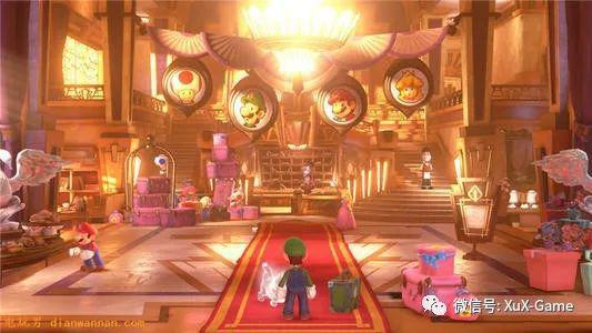游戏开场路易吉马里奥桃花公主一行人入住一个豪华酒店,在来酒店的车上马里奥和桃花公主有说有笑,而路易吉身边只有一条狗,狗……虽然我们不能以“单身狗的认证”来看待这个设定,但是这里通过如此对比,已经将人物性格和设定阐述出来了。