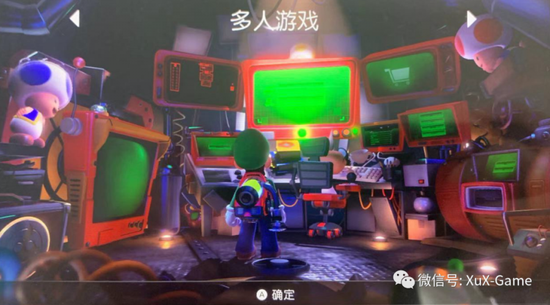 鬼屋3的导航是喂博士的工作室,路易吉救出喂博士后把工作室建在B1层的隐蔽车库。工作室的每个电脑屏幕表示一个功能,每切换一个功能时,对应电脑亮起,会播放空间角度转换的动画非常自然的出现功能界面,不会界面直接出现。