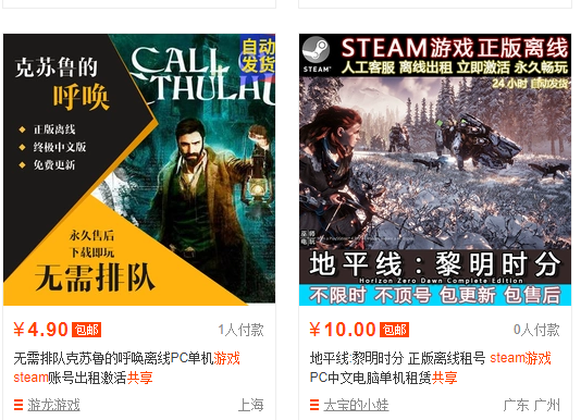 不少囊中羞涩的用户选择购买共享账号,就是因为穷,不想花太多冤枉钱,又想体验游戏,那么淘宝上其实大部分商店的价格都很良心,毕竟一个账号卖一堆人。