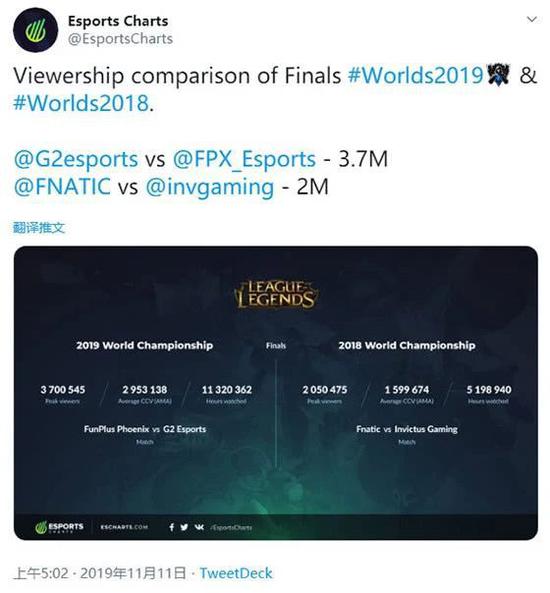 《多多自走棋》上海国际邀请赛总奖金100万美元,《云顶之弈》世界赛奖金100万。其中,《多多自走棋》直播时长共29小时,观众209万。与之相比,S9《英雄联盟》仅总决赛观赛峰值人数就高达370万,观赛总时长1132小时。