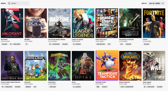 但要横向对比,《云顶之弈》与MOBA类的《英雄联盟》、FPS类的《CS:GO》以及近期上线的的《VALORANT》仍有不小的差距。仅在Twitch平台上的直播热度,《云顶之弈》就排在Top10开外。