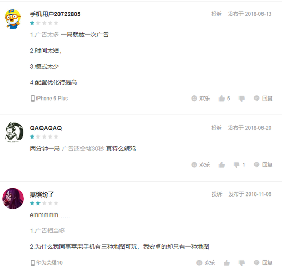 大量玩家在Voodoo早期爆款《黑洞大作战》下都有对广告的吐槽
