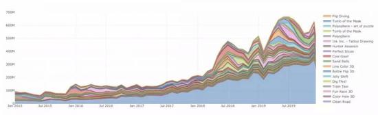 据AppMagic对全球应用市场多年来展开的数据跟踪统计可以发现,超休闲手游自2015年开始下载量逐步递增,自2018年开始井喷式发展并延续至今。