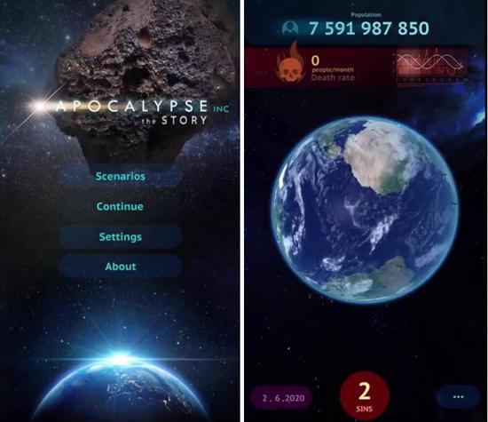 《Apocalypse Inc。》的故事背景设定在未来世界,人类即将面临世界大战、环境危机和其他灾难,玩家可以通过旋转界面当中的地球仪收集罪恶,然后通过不同的选择推动大灾难故事的发展,用罪恶点升级灾难危害性,提高每月死亡率,最终达到毁灭世界的目的。