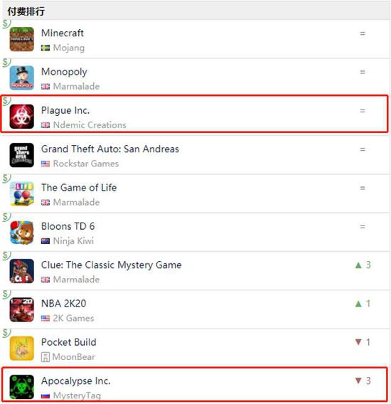 从App Annie统计的数据来看,2020年3月24日,该游戏将价格从1.99美元转为免费,一天之后恢复原价,3月27日,该游戏更换了游戏图标,即如今与《瘟疫公司》非常接近的版本。
