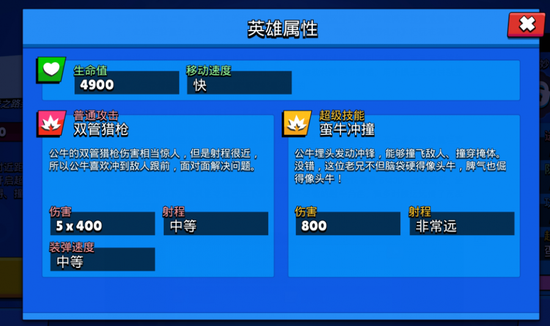 但公牛的初始血量是4900,而他的霰弹枪伤害是5*400,也就是说,进草丛贴脸的情况下,一个坦克也只能吃自己三下普攻。对于更脆的射手角色,很多时候远远挨了两发枪子就不巧暴毙了。