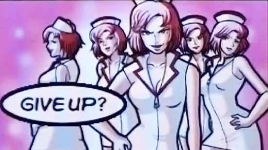 以护士为本职工作的女性角色同样为数不少,她们大多以性感成熟的大姐姐形象示人,往往拥有不为人知的另一面。尽管我们很少有机会看到她们履行自己的职责,但总体来说,这些护士角色为“病人不要随便死在走廊上”这一事业做出了巨大贡献。比如说——