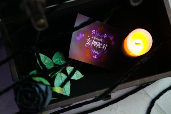 每一位玩家在现场都会有披风、巫师帽等等体验式的道具,来扮演成为解谜者,完成一系列任务之后,情景剧任务触发,在烛光摇曳之中,伊泽瑞尔,乐芙兰,斯维因,伊莉丝相继出现,带领玩家走进到神秘的黑色玫瑰故事中。