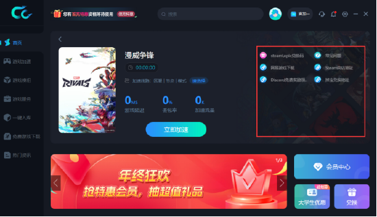 端游加速教程:打开CC加速器PC电脑版---搜索“漫威争锋“---点击【立即加速】