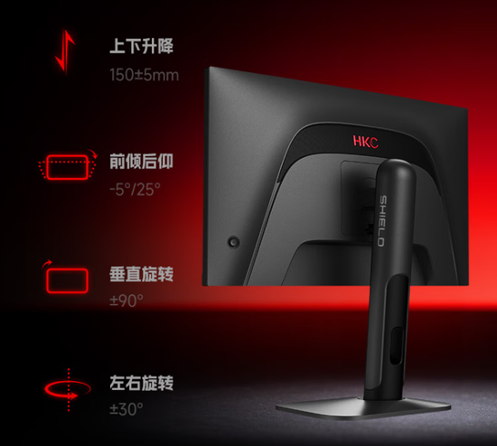 考虑到长时间游戏可能给用户带来的不适感,HKC UG25HF的人体工学设计上下足了功夫。显示器采用可调节支架结构,支持上下升降、左右旋转及前后倾斜等多种姿态变换,满足不同用户的个性化需求。与此同时,Type-C接口的一线畅联特性也大大简化了连接流程,只需一根线缆即可完成数据传输与充电双重任务,极大地方便了笔记本电脑用户的日常办公与娱乐生活。