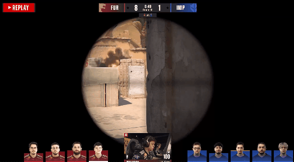虽然Imperial依靠前压拿到一分,但是接下来三回合面对FURIA钢铁洪流般的攻势丝毫没有招架之力,被FURIA连拿3分,比分来到6-1。第八回合,FURIA常规控图后先对A小展开道具骚扰,火烧连营双方打出一换一人数互换,随后FURIA留yuurih去警家断后,队友集合A小正面,随着A小进攻顺利进行,警家埋伏的yuurih也能打出釜底抽薪的效果,FURIA再次将Imperial打入保枪时间。第九回合双方在A小展开激战,molodoy直接使用AWP打出三杀,剩下的CT即使再强也无能为力。次回合再次打出科技般的双杀。