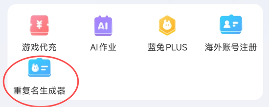 2. 打开迅猛兔应用,点击工具栏“重复名生成器”