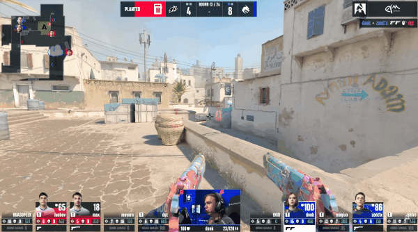 BLAST鹿特丹公开赛2026,Spirit对阵9z。Spirit实力显然大于9z,图一Spirit上半场一分没给9z拿,直接碾压;图二则是donk突破直接击溃9z防线,Spirit连拿八分直取赛点。最终,Spirit以2-0轻取9z晋级败者组决赛,9z遭淘汰。
