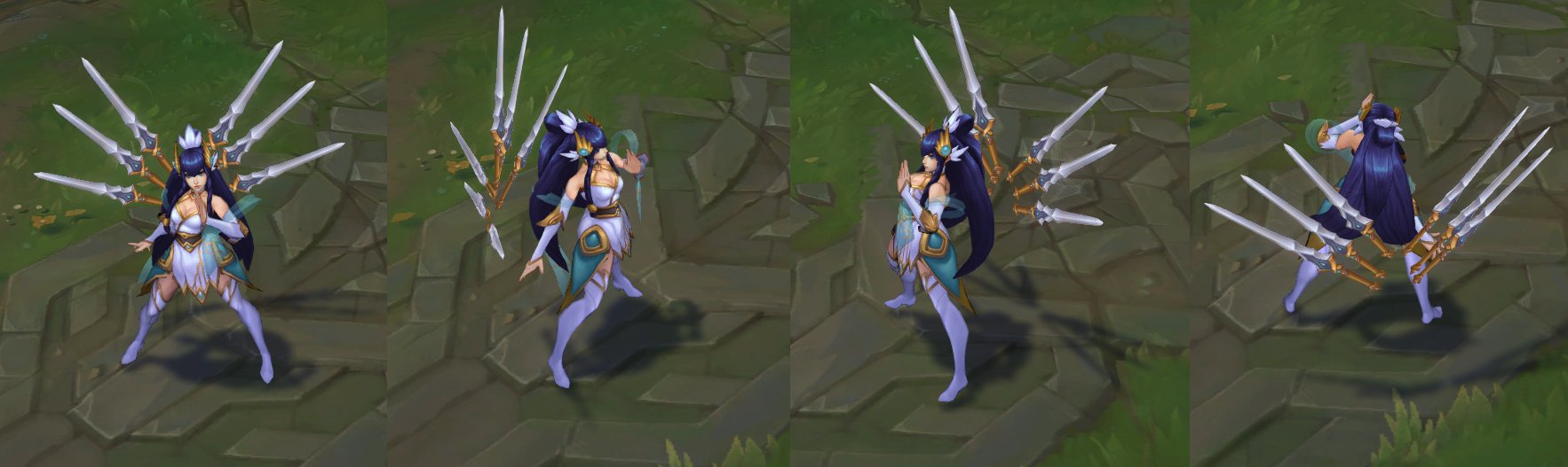 舞剑仙和莲花之令风格有些相似,但新皮肤突出中国古典风的同时,加入了不少现代时尚元素。特效颜色主体为粉色,十分符合刀妹本身的气质,虽然是个舞艺精湛的妹子,但却也有着极强的能力来保护他人。