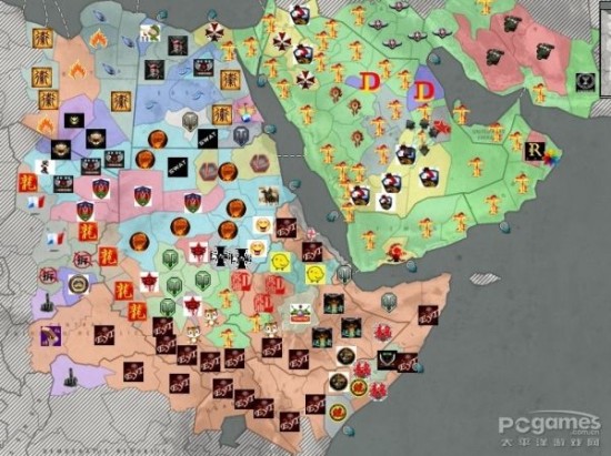 North Africa变得十分混乱。战火领土领土大范围缩水。众多军团在争取North Africa为数不多的土地。但是看着领土上的颜色似乎一个联盟正在建立。