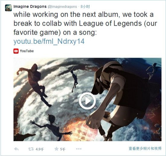为了迎接即将开战的《英雄联盟》 2014 世界大赛,Riot 释出了“无惧的勇士”动画音乐 MV。经证实,这首MV的演奏者正是现在著名的摇滚乐队Imagine Dragons,国内乐迷们都喜欢称呼他们为梦龙乐队,它们曾为《变形金刚四》演唱了主题曲《Battle Cry》。