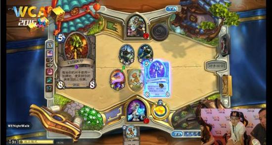 开局蓝毛使用法师,而WENightWalk使用机械法。WENightWalk起手牌不错,3费机械蜘蛛,之后收割机亡语召唤铸甲师,让法师在前期非常的安逸。