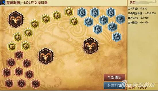 符文配置方面,这里选择的是红色法穿、黄色成长生命值、蓝色固定魔抗、大精华法强的常用AP符文。