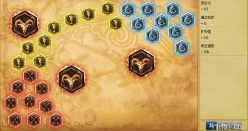 红色:攻击力*9 黄色:护甲*9 蓝色:魔抗*9 大精华:攻速*3