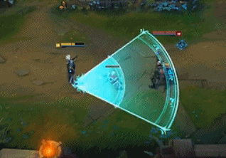 短暂的蓄力之后,卡蜜尔向前方扇形范围进行切割,造成65/95/125/155/185(+?)物理伤害。