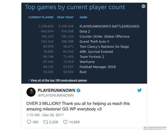 在《绝地求生:大逃杀》在STEAM的在线玩家数量超过V社本家《DOTA2》的瞬间,预示着这款游戏必将拥有不凡的前景。即便之后中国玩家爆炸性涌入,活跃数量远超其他国家,只要国服未开,那么这个外挂横行、回档和卡顿时常发生的厮杀之地,便依然有着不可忽视的前景。