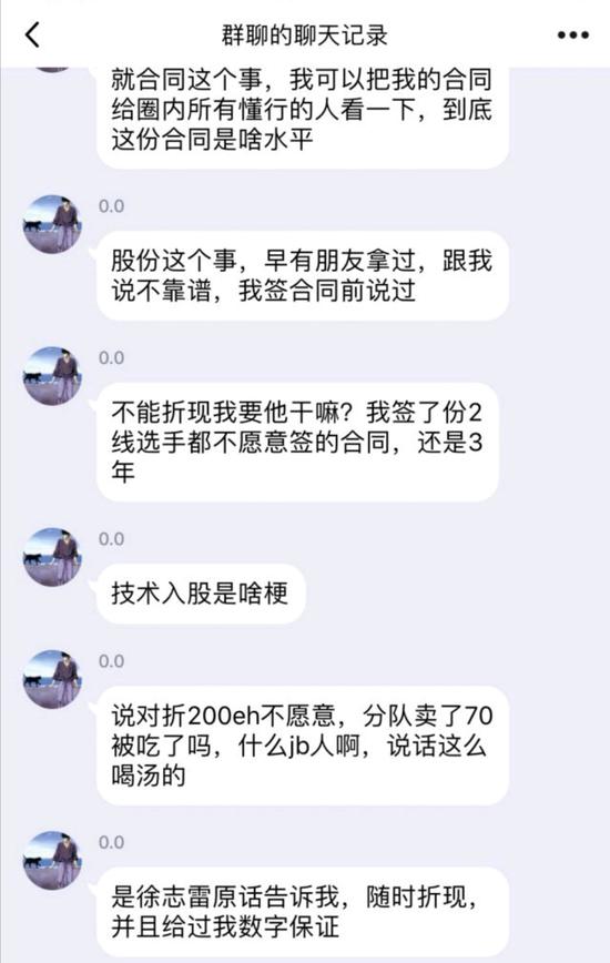据Sylar说,徐志雷曾经向他保证可以随时折现,但现在这个诺言并未兑现。