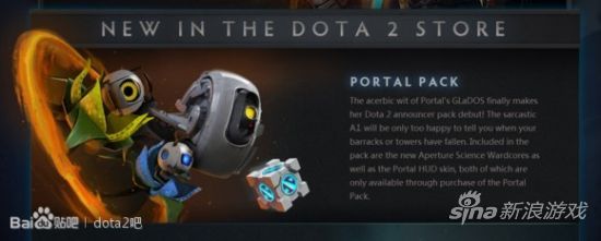 《传送门》里尖酸刻薄的GLaDOS终于在Dota 2的播音员中闪亮登场!善于讽刺的人工智能只怕会非常乐意告诉您兵营或者防御塔已被摧毁。大礼包中还含有全新的光圈科技核心守卫和《传送门》游戏界面皮肤,全部都是《传送门》大礼包独家拥有