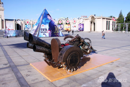 2013第十一届中国国际网络文化博览会在北京展览馆举行,初到门前便发现两个蜗牛公司请来的《黑金》门神。