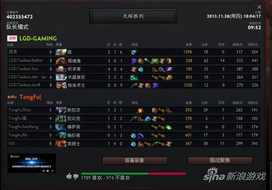 在新浪超新星bo3赛同福(tongfu)对战LGD.cn 的第二局中,Tongfu.zhou作为队长却在开局仅仅9分钟,被破两座一塔,经济落后6000不到的情况下打出GG实在有失职业水准,让人费解不堪。作为职业选手Tongfu在比赛前期被压制的情况下消极比赛,莫名其妙送人头,阵容不打出节奏,mu的龙骑在等级前三的时候选择换路送,辅助不gank只在塔下蹲人,zhou的大鱼人8分钟点金9分钟GG,这样匪夷所思的比赛实在无法令人接受。
