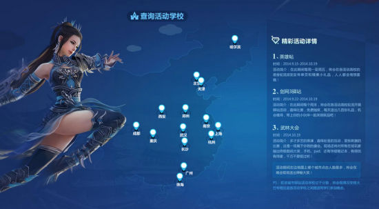 《剑网3》校园CLUB开启随着全国各城市和高校的《剑网3》CLUB组建完成,首轮线下驿站的互动活动即将开启!活动时间为9.20/21、9.27/28、10.11/12、10.18/19日。每一所学校只进行2个周末共4场《剑网3》驿站活动,如果是晚会指定学校,则进行2个周末共4场《剑网3》驿站活动和1场武林大会晚会活动。
